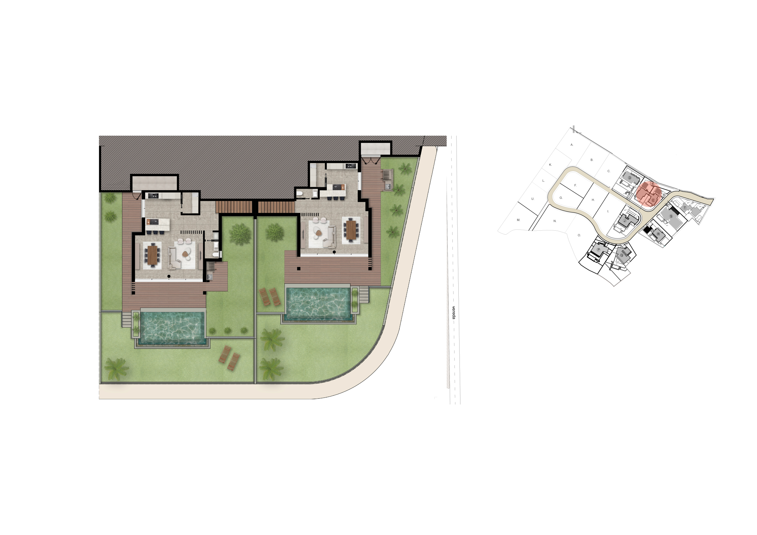 O Lote E inclui duas moradias isoladas, cada uma com 585 m² de terreno, 3 quartos e 4 casas de banho, concebidas para oferecer o máximo conforto, privacidade e sofisticação num dos cenários mais deslumbrantes da Madeira.